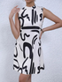 Make a statement with this Women's Sleeveless Patterned Diver Mini Dress, featuring a bold white abstract art design. This eye-catching dress is crafted from high-quality, scuba-style fabric that provides a flattering fit and structure. Perfect for daytime outings or evening events, its sleeveless design and mini length add a touch of elegance and modern flair. Pair it with your favorite heels or sandals for a chic, artistic look that stands out."
